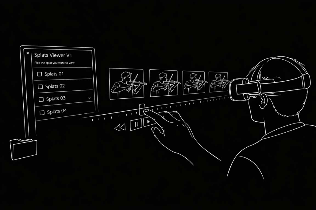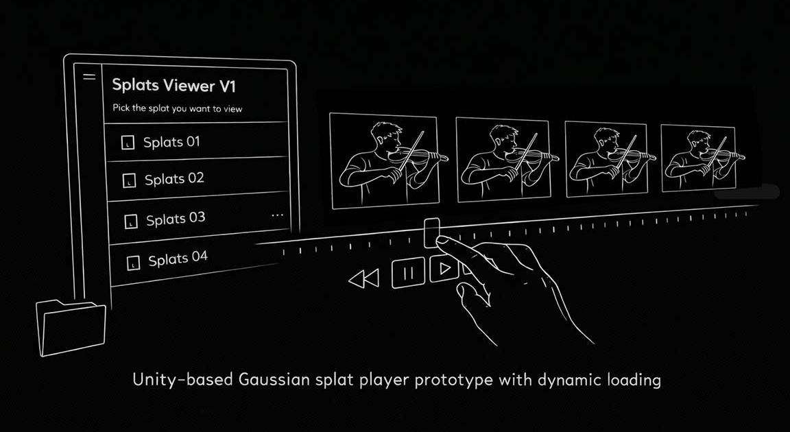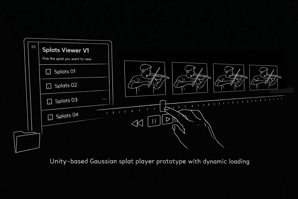 I built a Unity prototype player that supports both static Gaussian splats and time-based “4D” Gaussian splat sequences. The player includes playback controls for forward and reverse playback, frame-by-frame, and timeline scrubbing via a slider.