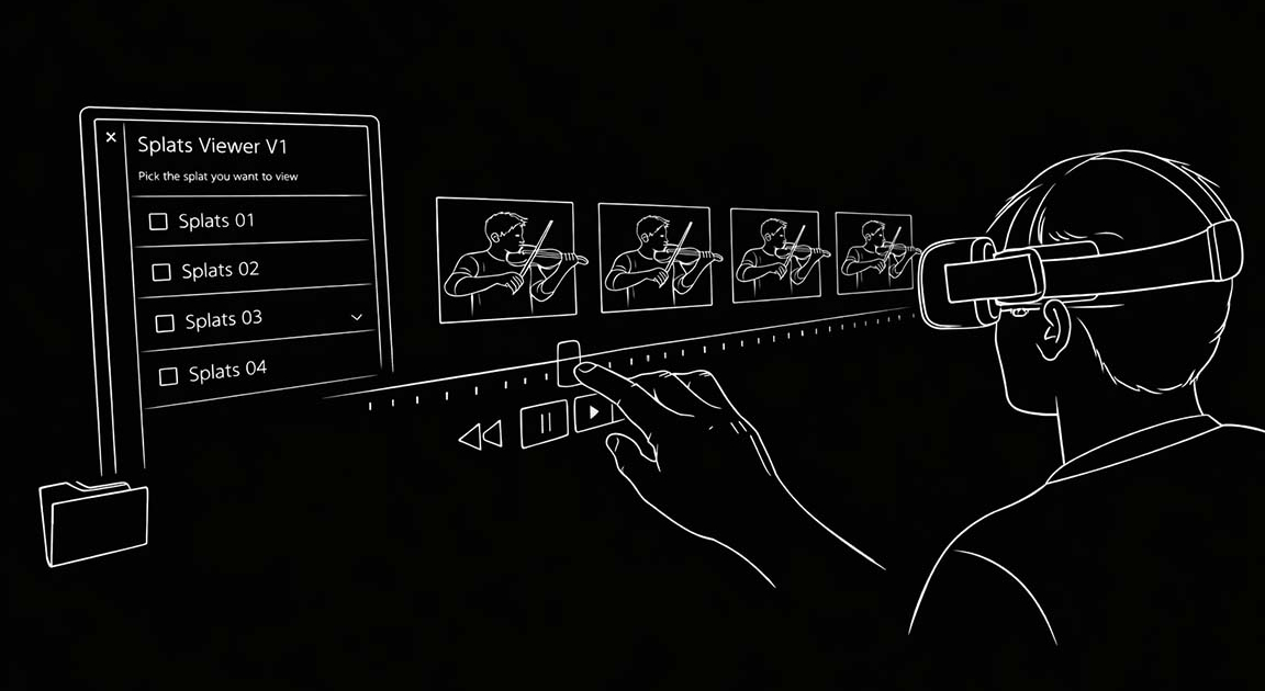 This prototype makes Gaussian splat content explorable in a spatial environment, with interactive playback, scrubbing, and dynamic loading on Apple Vision Pro. It enables early validation of spatial quality, motion, and performance, bridging offline captures and real-time immersive experiences