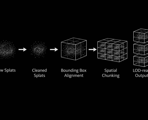 This approach makes large Gaussian splat environments practical for real-time use by reducing visual noise, adapting detail based on distance, and streaming only the data needed around the user.