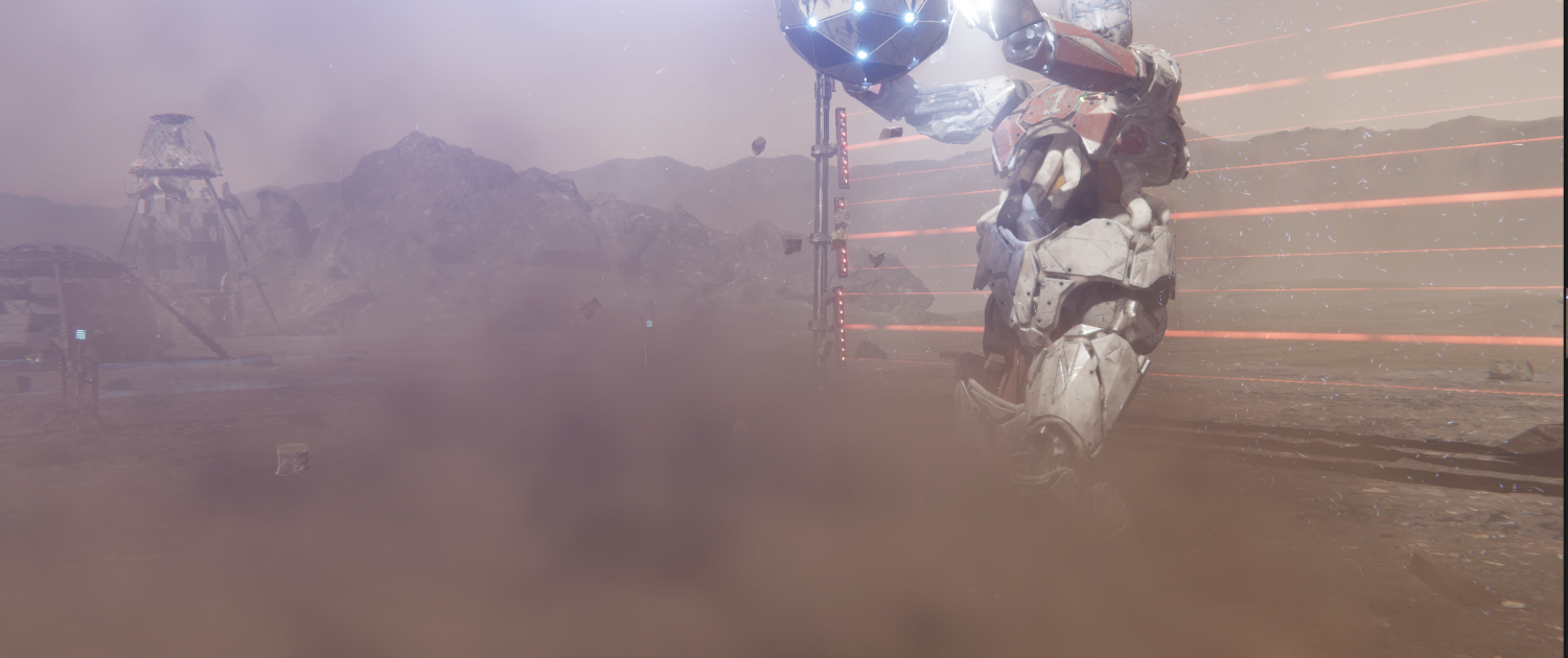 A GPU-based particle system recreates the rock burst effect in real time, blending mesh deformation and particles into a single impact moment.