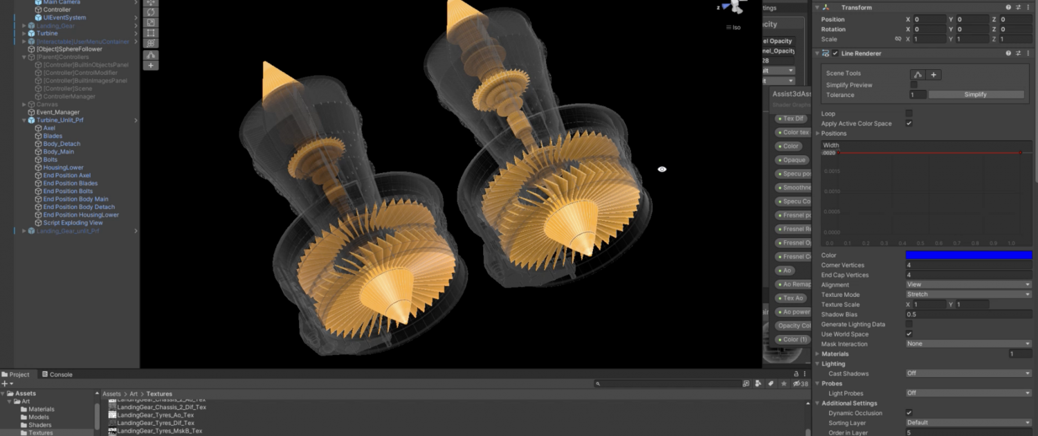 A stylized shader unifies the look of assets using subtle rim lighting to improve edge clarity and readability in AR.
